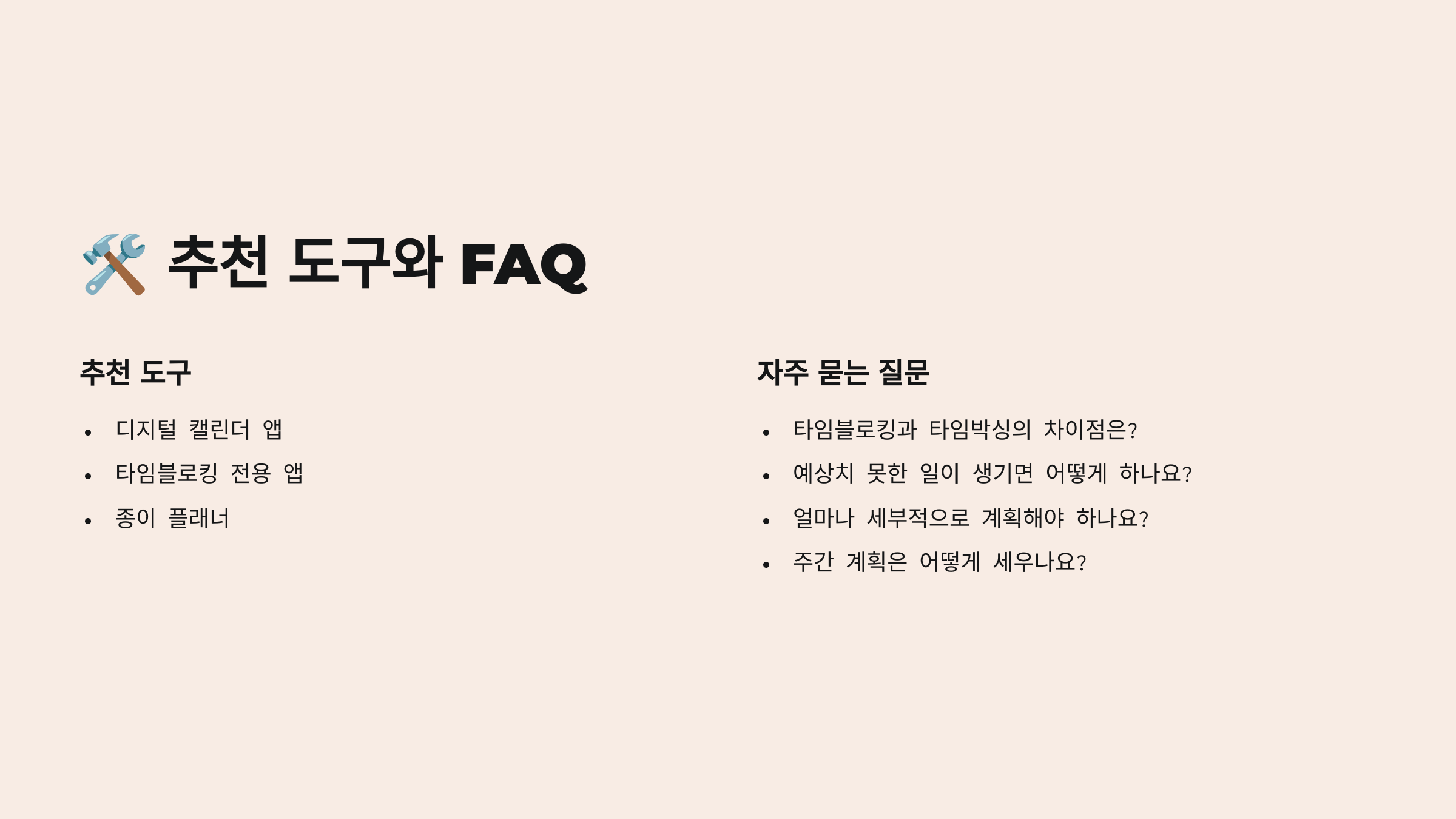 | 기반 | 해야 할 일 나열 | 시간 중심 계획 |