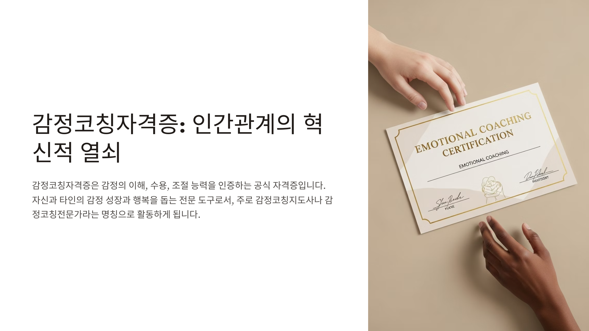 감정코칭자격증은 감정 인식, 공감 능력, 의사소통 기술을 체계적으로 배우고, 타인의 감정을 이해하며 효과적으로 대응할 수 있는 전문가가 되기 위한 자격이에요. 특히 아동, 청소년, 부모 상담 등 다양한 분야에서 활용 가능하답니다.