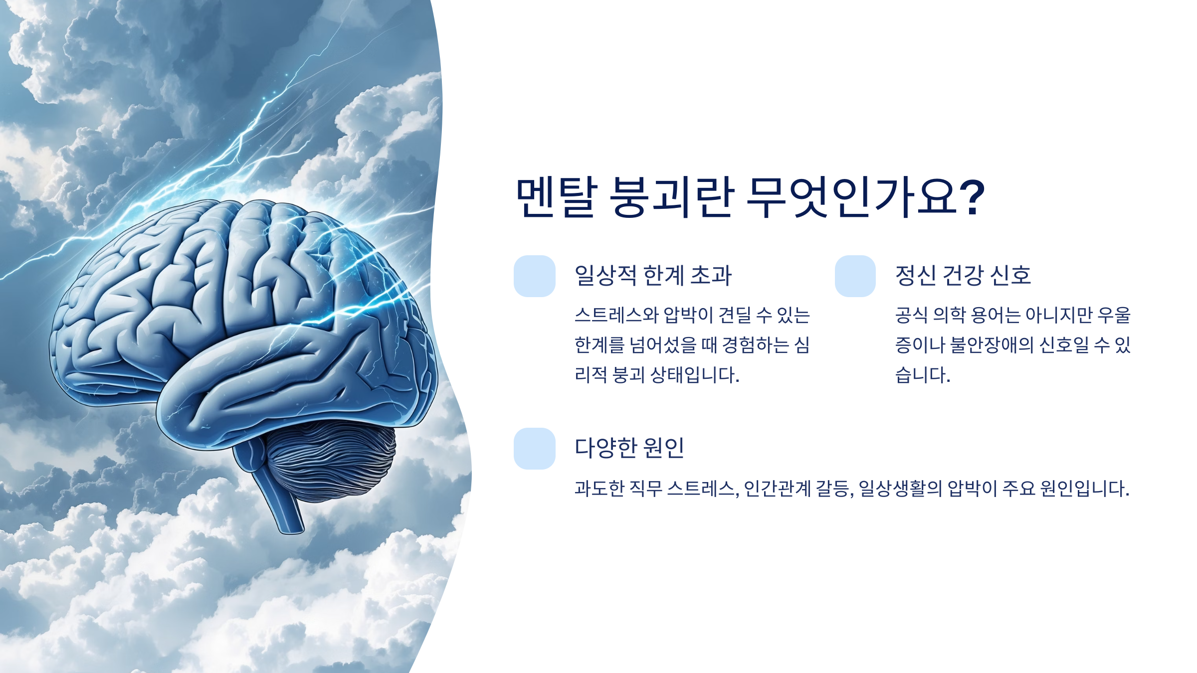 멘탈 붕괴는 단순히 약한 사람이 겪는 문제가 아니에요. 뇌의 스트레스 반응 시스템이 과도하게 작동하면서 생기는 생리적 반응이에요. 코르티솔이라는 스트레스 호르몬이 폭발적으로 분비되면 마음의 중심을 잡기 어려워져요.
