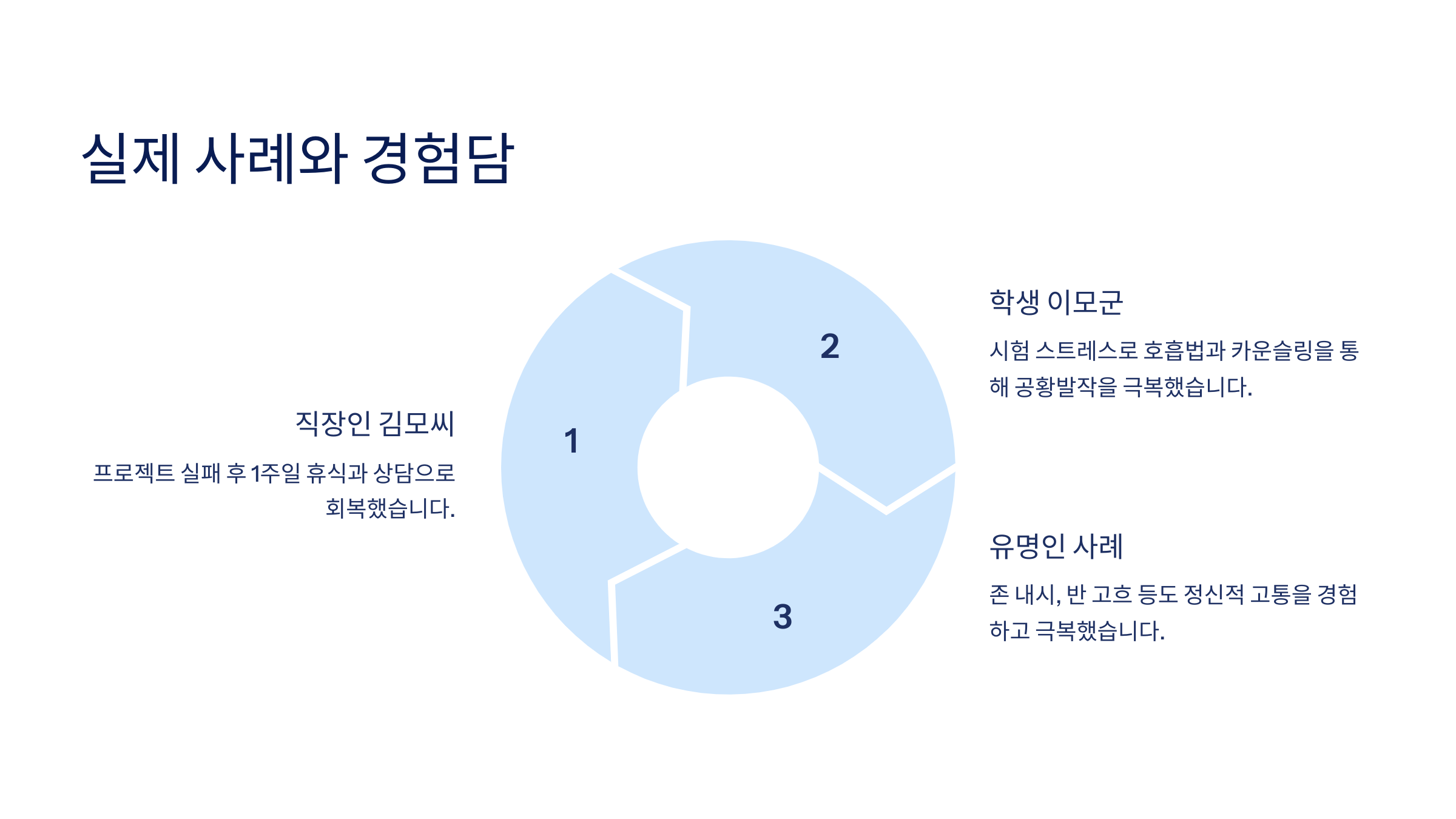 한 스타트업 대표는 투자자 앞에서의 PT 중 갑자기 멘탈이 붕괴되었어요. 말이 꼬이고 심장이 벌렁거리던 순간, 그는 단 10초간 눈을 감고 복식호흡을 했고, 그제야 다시 말을 이어갈 수 있었대요. 발표는 성공적이었고, 투자도 받았다고 해요.