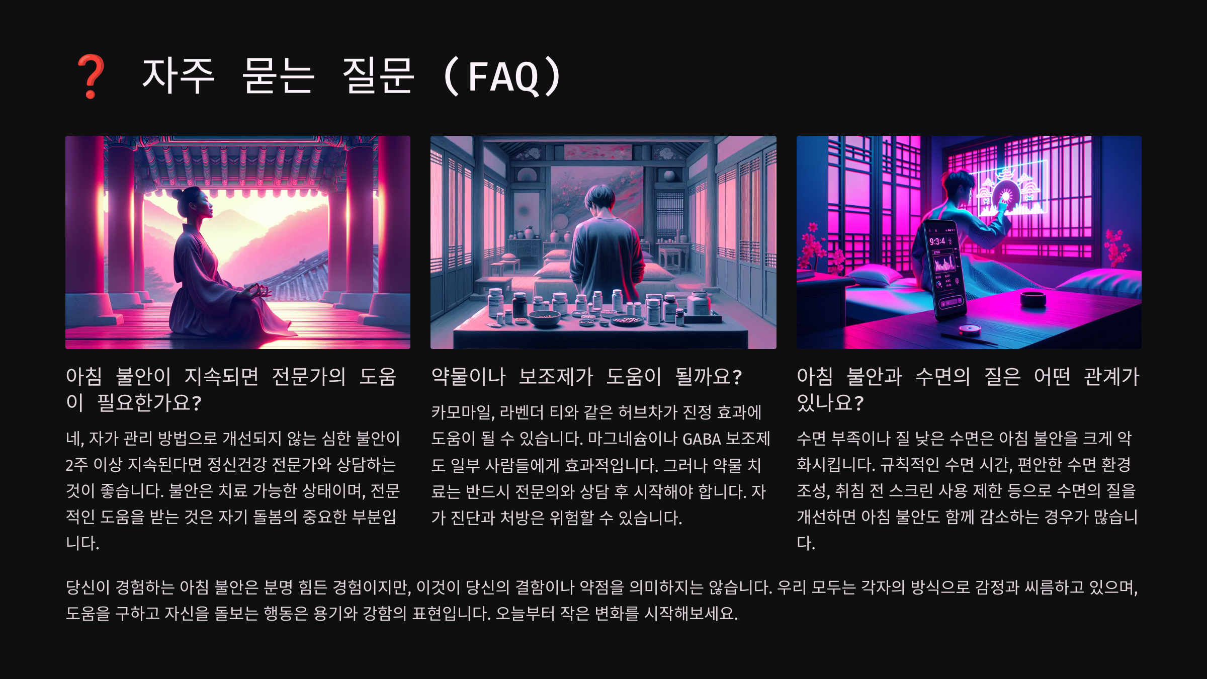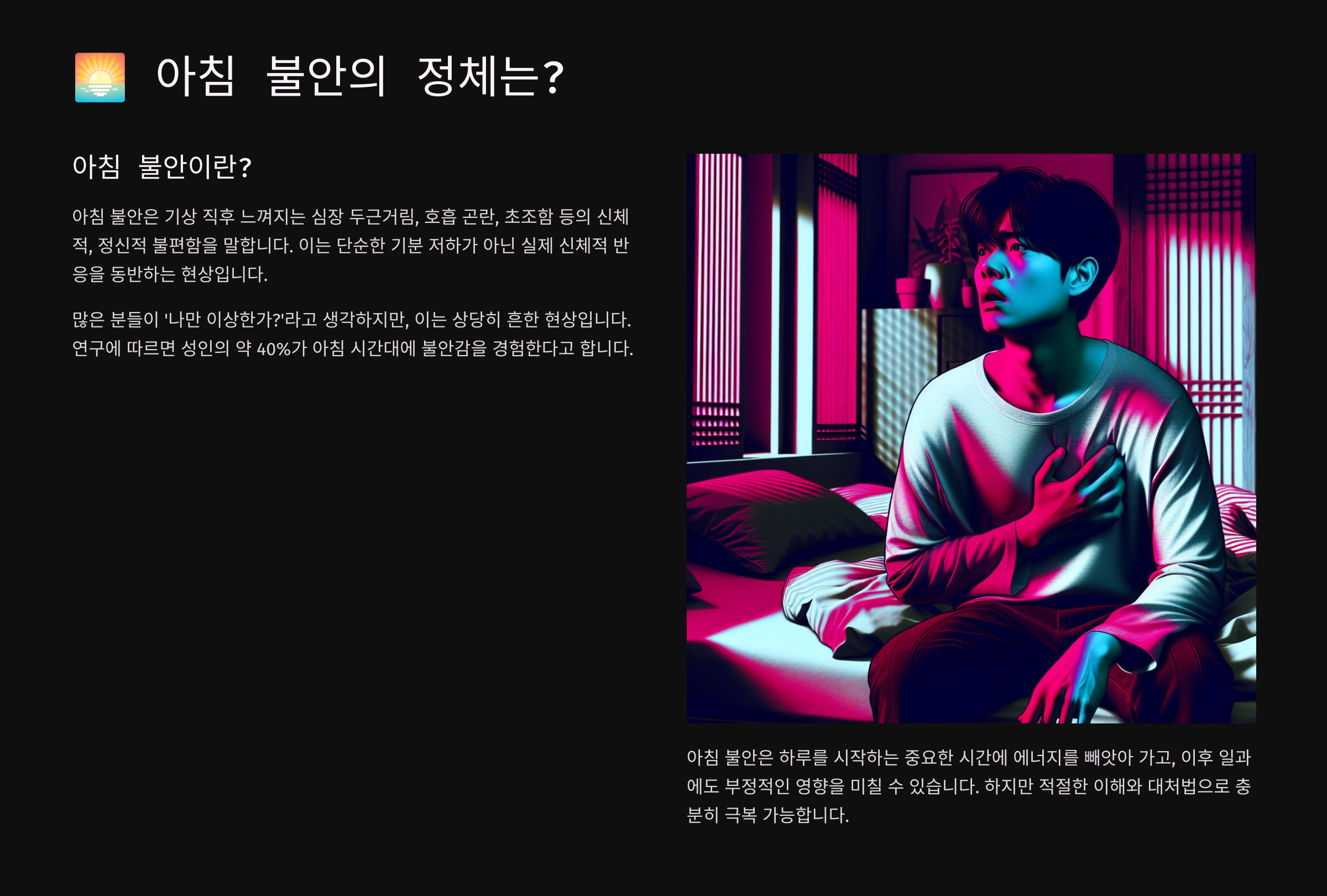 아침 불안을 이겨내기 위한 실천법은 바로 이어지는 섹션에서 구체적으로 소개해드릴게요. 마음이 조금은 가벼워졌다면 아주 잘 따라오고 있는 거예요!