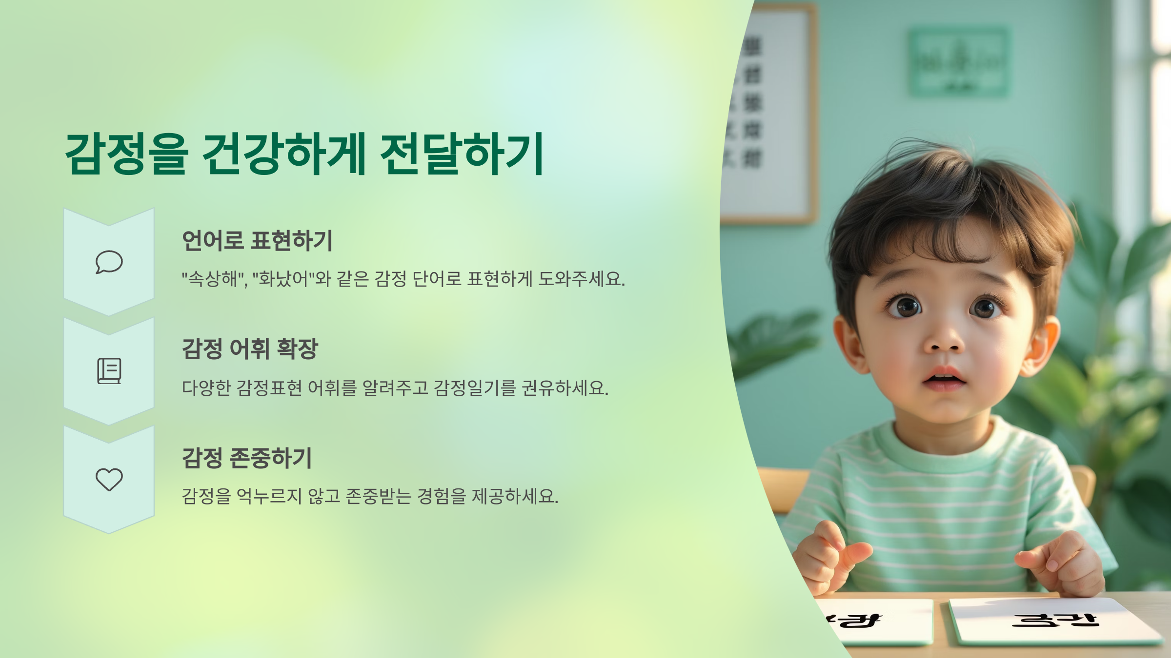 부모가 욱하는 순간에도 아이에게 감정을 건강하게 전달하는 방법은 꼭 필요해요. 사실 아이는 부모의 감정을 무조건적으로 받아들이기 때문에, 어떤 말과 톤으로 표현하느냐에 따라 아이의 마음이 크게 흔들릴 수 있답니다.