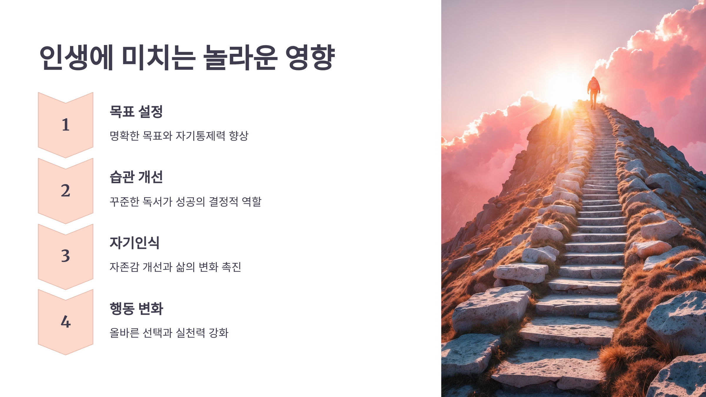 자기개발서를 읽는다고 해서 인생이 한순간에 바뀌는 건 아니에요. 하지만 그 안의 작은 문장 하나, 문단 하나가 생각을 바꾸고 행동을 유도해요. 바로 그 ‘행동’이 인생을 변화시키는 씨앗이 되는 거죠.