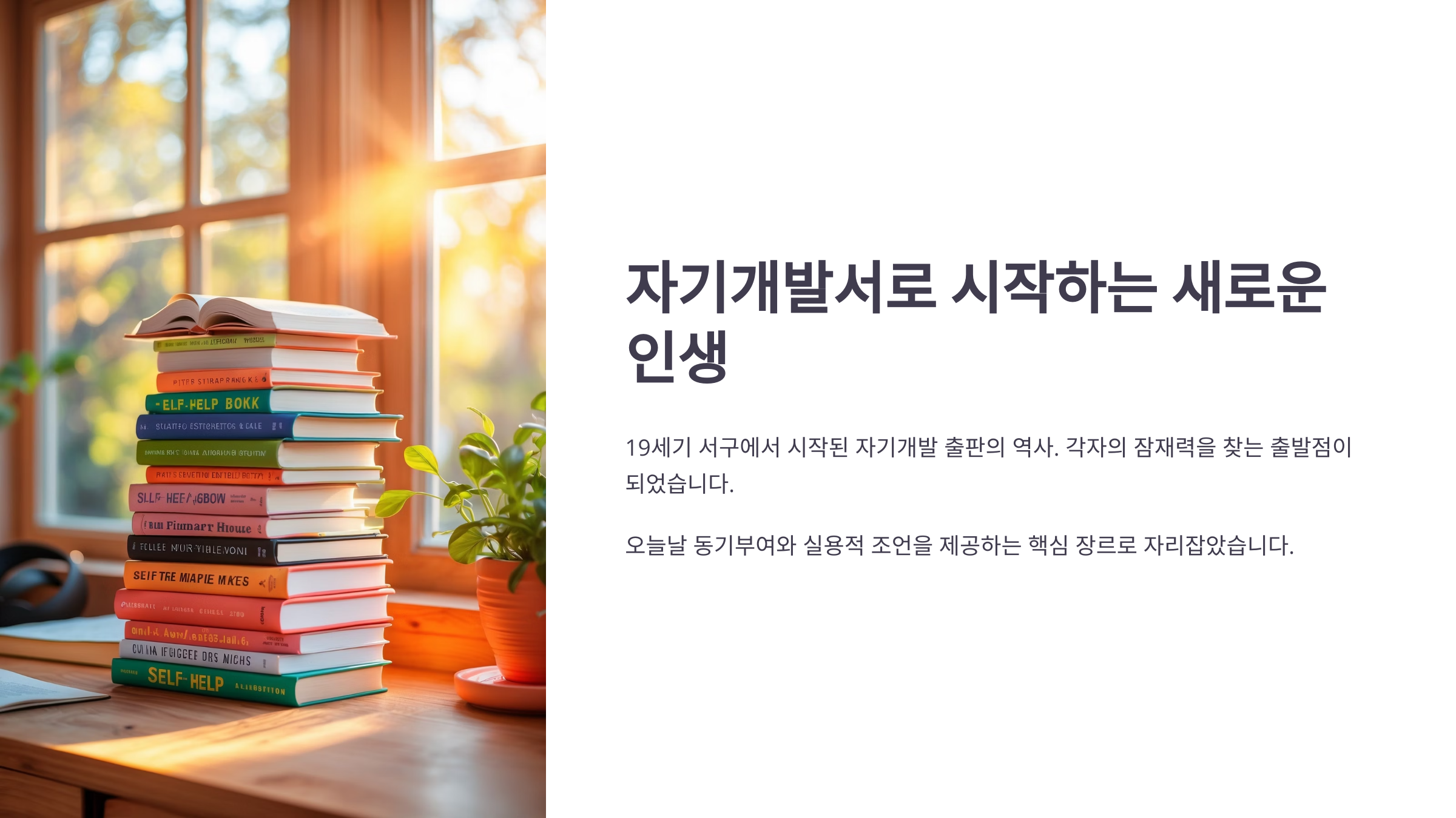그 이후로도 자기개발서는 경영, 시간관리, 감정조절, 인간관계 등 다양한 분야로 확장됐고, 지금은 거의 ‘인생의 사용설명서’ 같은 존재가 되었답니다.