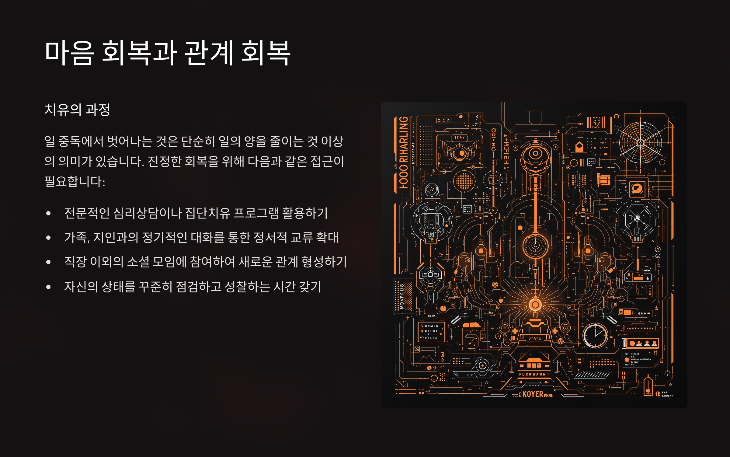 일 중독에서 벗어나려면 단순히 일의 양을 줄이는 것을 넘어, 지쳐 있던 마음을 회복하고 단절된 인간관계를 다시 잇는 과정이 꼭 필요해요. 일에 몰두하는 동안 무의식적으로 소외시켰던 감정들과 사람들을 다시 마주해야 비로소 진짜 회복이 시작돼요.