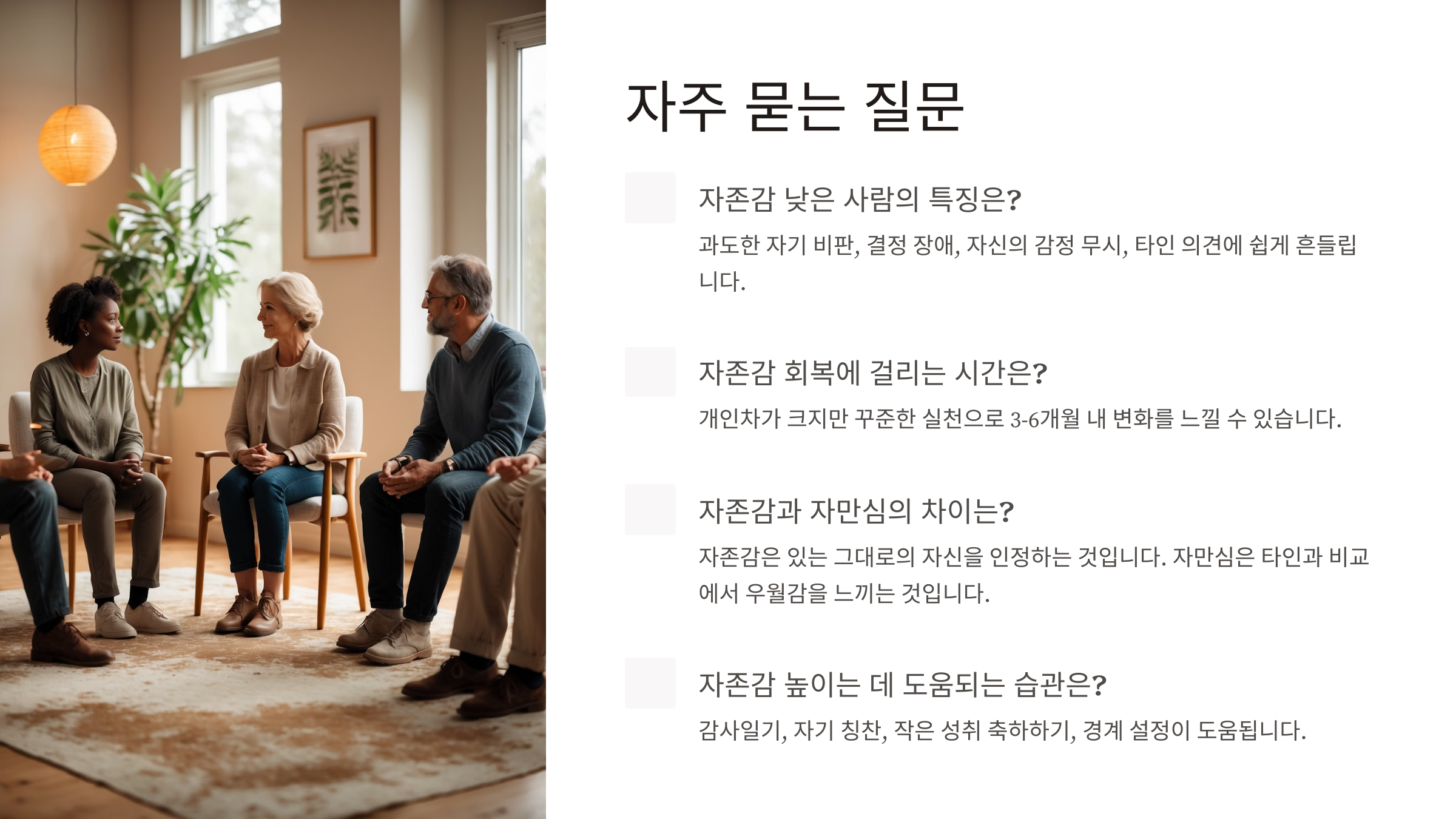 A3. 꼭 전문가의 도움만으로 해결할 필요는 없어요. 일상에서 작은 연습과 주변의 따뜻한 대화만으로도 충분히 자존감을 높일 수 있답니다.