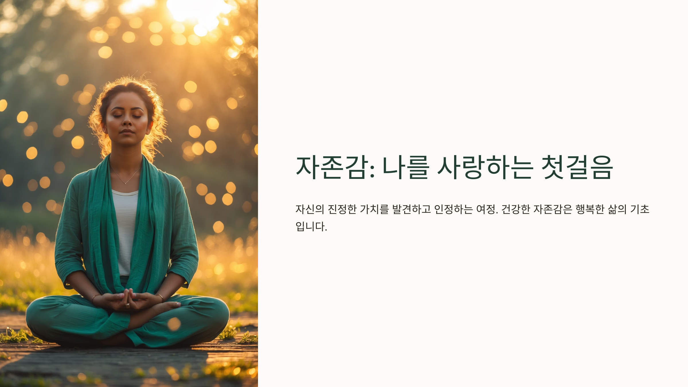 하지만 그건 사실이 아니에요. 당신은 존재 자체로 충분히 가치 있는 사람이에요. 자존감은 타고나는 게 아니라 스스로 키워가는 거예요.