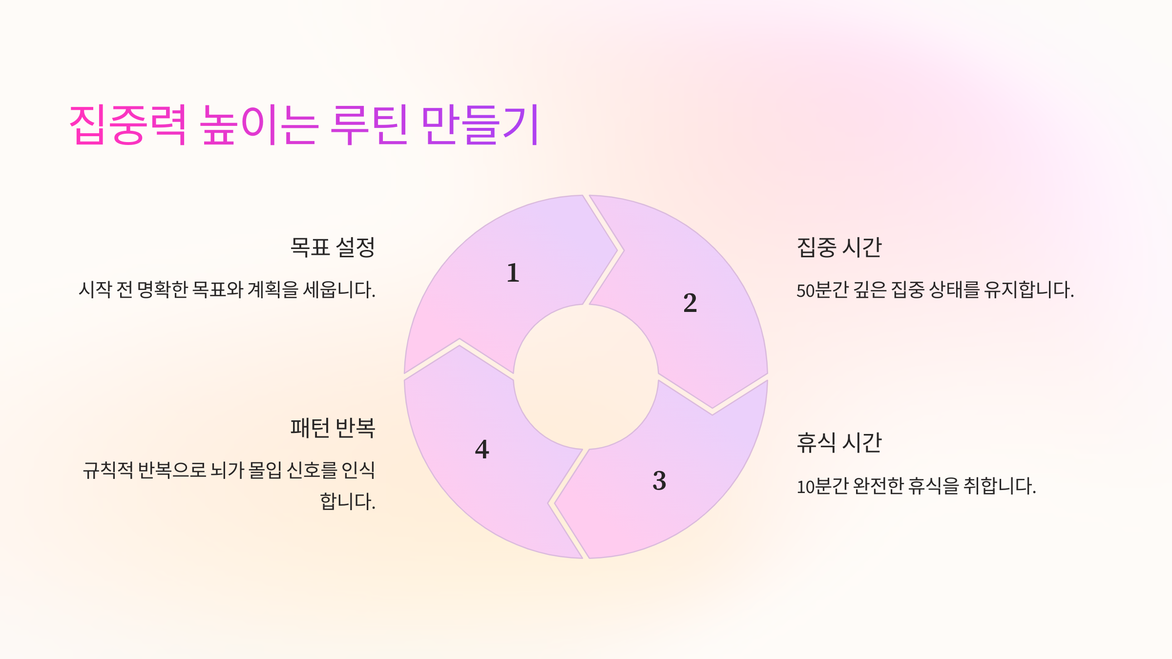 이제 집중력 루틴의 기본 뼈대를 만들었어요! 다음 문단에서 집중을 도와줄 멋진 도구들까지 알아볼 거예요. 🛠️✨