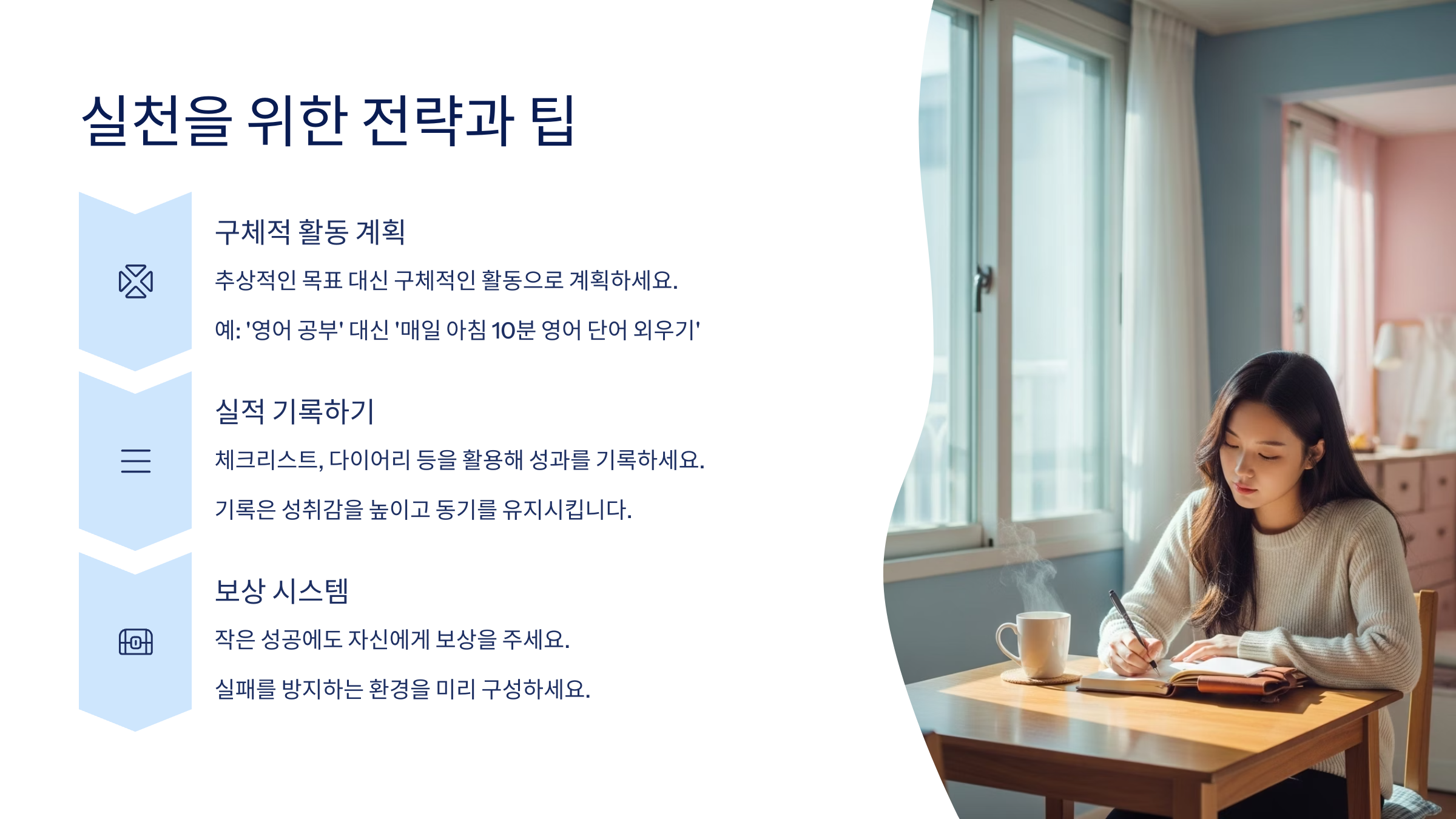 1일 1성장을 성공적으로 이어가기 위해선 단순히 ‘의지’에만 의존해선 안 돼요. 환경과 계획, 기록까지 모두 전략적으로 설계하는 게 중요하죠. 여기 실천을 지속할 수 있게 도와주는 팁들을 알려줄게요. 누구든 충분히 할 수 있어요!