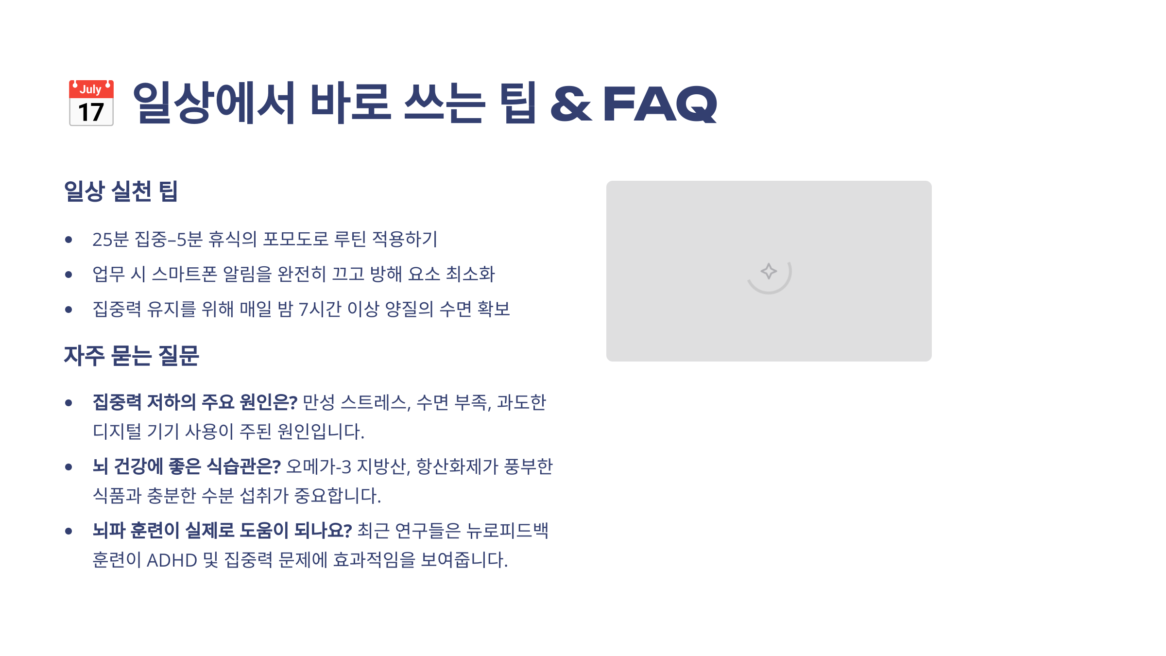 오늘 하나만 실천해도 내일의 집중력은 달라질 수 있어요. 시작은 작지만, 결과는 커요!